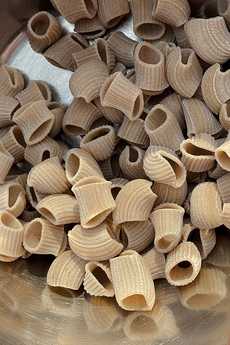 Långt från restaurangtäta gator har vi öppnat en liten lokal pastarestaurang där vi tar tillvara på det svenska landskapet. Vi tillverkar färsk pasta på KRAV-märkt Dalavete som växer 40 minuter från Abrahamsgården (Widichs Gård i Gustafs). Glöm den där solgula pastan du får i Italien, hos oss är den ljusbrun eftersom vetesorten vi använder är fylld med vitaminer, mineraler och fibrer. Istället för att försöka efterlikna andra länders matkultur (ingen av oss är italienare) vill vi skapa en upplevelse rotad i vår jord och vårt klimat.